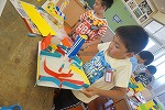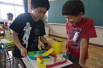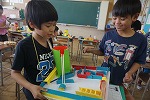 作品を完成させたら、仲間の作品で遊び、作品のよさや工夫した点などを