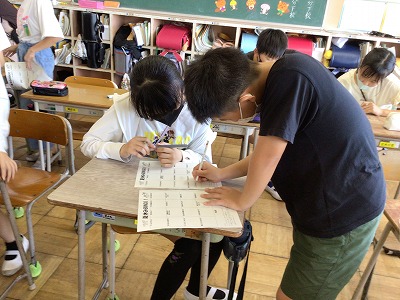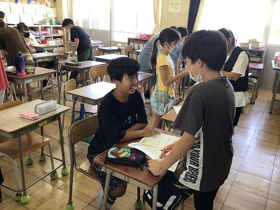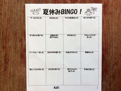 5時間目には、「夏休みBINGO!」を行い、みんなと思い出を話しました。