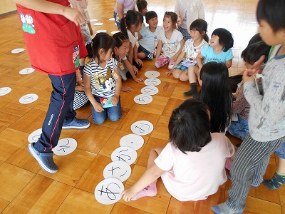 学校に戻ってから、さっそくカエルを飛ばして遊びました。