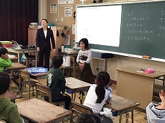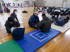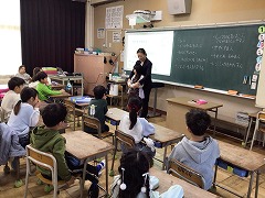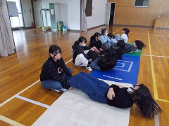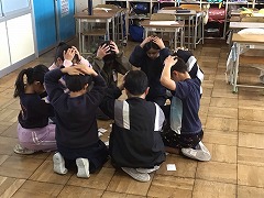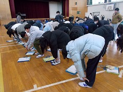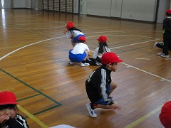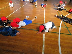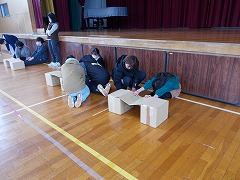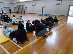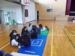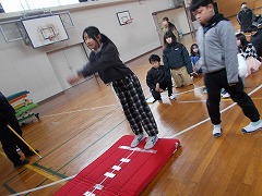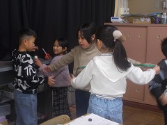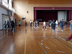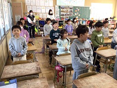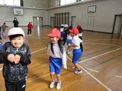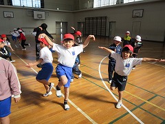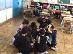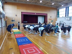 音楽の時間には、体ほぐしやリズム遊びをして授業が始まりました。