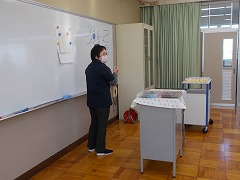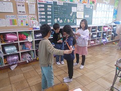 「ロボット」という説明文を読み、困っている人を助けているロボットがいるということを知りました。今日は、どんなロボットがあったらいいかを自分たちで考えました。「探し物を探してくれるロボット」「高いところに手が届かないときに置いてくれるロボット」などいろいろなロボットを考えていました。