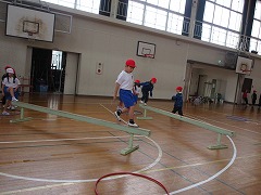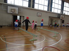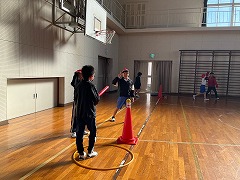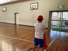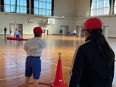 体育でティーボールに取り組みはじめました。順番を守ったり、周囲の安全に気を配ったりしながら練習することができていました。大きく打ち上げられた時には歓声が沸きました。