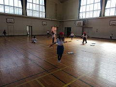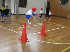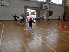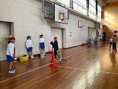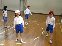 児童会企画の「佐屋西なわとび大会」に向けて、前跳び、後ろ跳び、交差跳び、二重跳びの練習をしています。