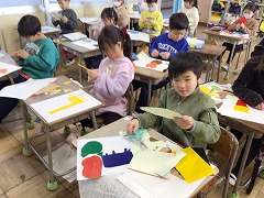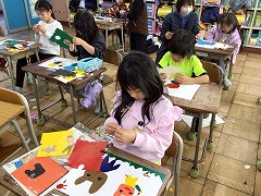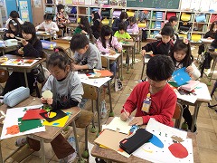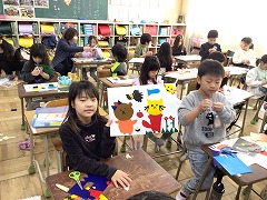 図工の時間には、先週に続き、紙版画に取り組んでいます。