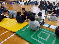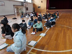 2月の授業参観で行う発表の準備のため、6-1に集まり、担当を決めました。
