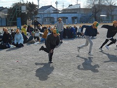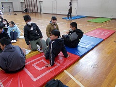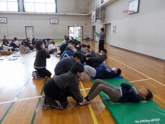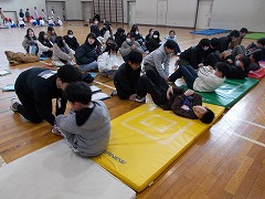 準備運動を兼ねて、太ももの裏側が伸びるストレッチを行いました。