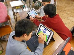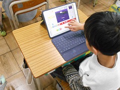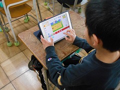 今日は、タブレット端末のプログラミングアプリを使って学習しました。子どもたちは、自分でプログラムした簡単なゲームを作りました。そして、出来上がったゲームを一緒に遊びました。