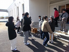 準備運動を兼ねて、太ももの裏側が伸びるストレッチを行いました。
