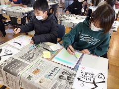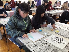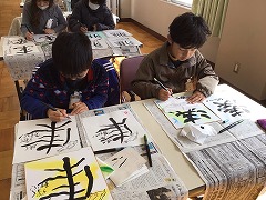 子どもたちからは習字と違って、「自由で書いていいんだね」という声が多く、いきいきとした様子で各々の己書を作成しました。