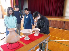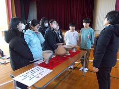 今日は、「あいち遺跡ミュージアム学校博物館」の学芸員さんが来校されました。