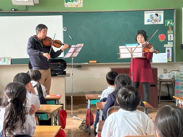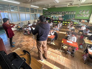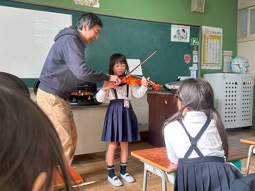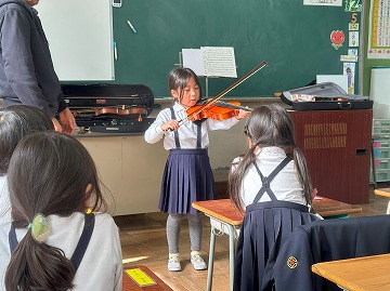 1年生の音楽の授業は、バイオリンの鑑賞会でした。