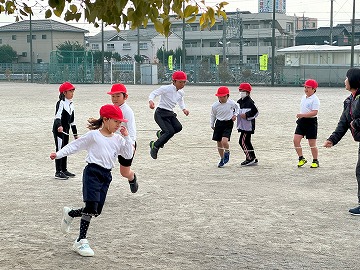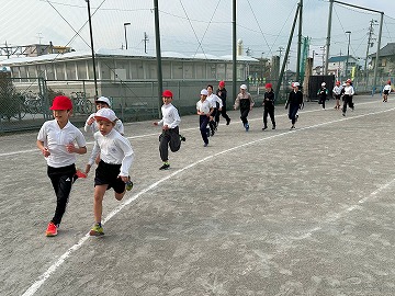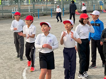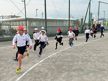 どの学年も来週行われる、持久走タイム計測に向けて走りこんでいます。4年生では、前半後半に分かれて試走を行い、互いに声援を送っている姿が見られました。