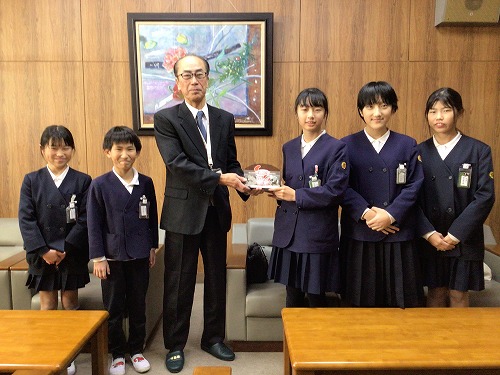 本日、児童会役員たちが、愛西市社会福祉協議会の方に手渡しいたしました。