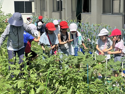 ずいぶん暑くなってきました。愛知県下には本日「熱中症警戒アラート」が発表されています。午前10時ごろの中庭では2年生が野菜畑の草取りをしましたが、その頃の中庭の暑さ指数(WBGT)は30を下回っていました。