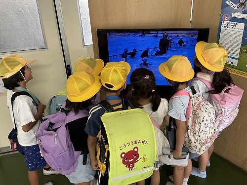 さっそく、下校時に通りかかった子どもたちが、自分や友達の姿を見つけては声を上げていました。