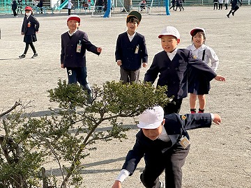 休み時間にはさっそく、運動場で元気に活動する姿が見られました。