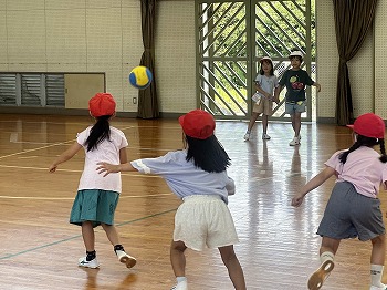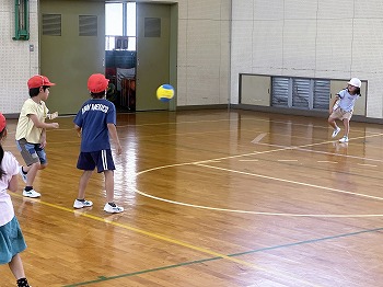 7月生まれの子にインタビューをした後、レクをして楽しみました。