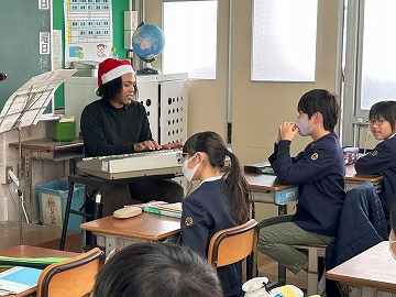 「クリスマスコンサート」として、キーボードの演奏と素敵な歌声、英語での歌を披露してくれました。子どもたちは日本語歌詞で一緒に歌い、みんな大喜びでした。