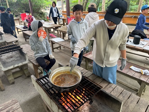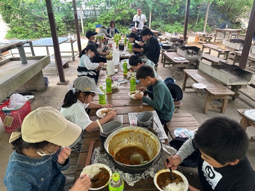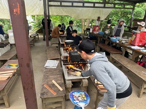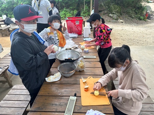 5年生は午後3時から、野外炊飯、午後6時からキャンプファイヤを行いました。