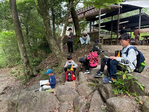 カレーライスは家庭科室で練習してきましたが、今回は薪と飯盒でのカレー作りでした。どの班も役割分担してテキパキと調理をすることができ、みんなでおいしくいただきました。片付けをてきぱきと終えたあとはスケッチタイム。