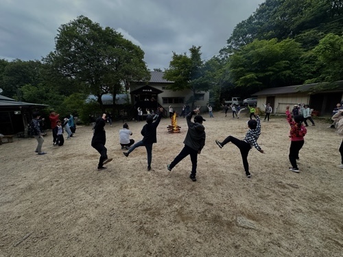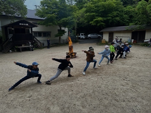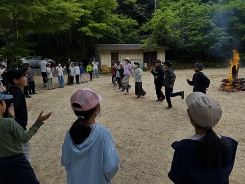 キャンプファイヤは、時間が早まったため、まだ明るい中での活動になりましたが、一人一人の楽しむ表情まで互いによく見ることができました。「ジャンボリミッキー!」などのダンスに、どの子ものりのりで参加しました。ダンスの後のゲームでもどの子も元気よく参加していました。