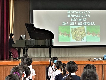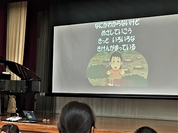 久しぶりの全校合唱でしたが、みんなで元気よく、大冒険に出発しました!
