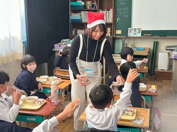 本日の給食時にPTAの役員さんたちが、全校のみんなにデザートプレゼントを配ってくださいました。