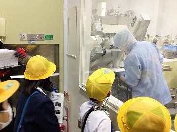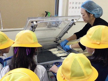 3年生が、市内の製麺工場・ダイイチ食品さんに社会科見学に行きました。ガラスの向こうで衛生に気を付けて製麺されている様子や、袋の真空パック、高く積み上げられた通函など普段見慣れない作業・工場の様子を見学させていただきました。