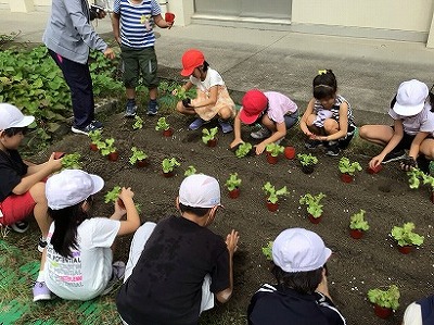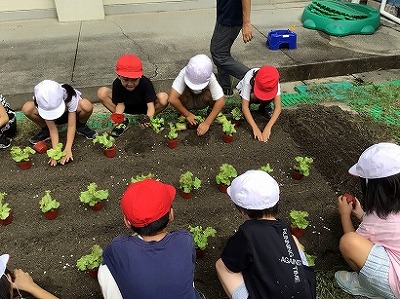 2年生が秋の野菜を育て始めました。JAの方に教えていただきながら、ラディッシュ(はつか大根)の種まきとリーフレタスの苗を植えました。