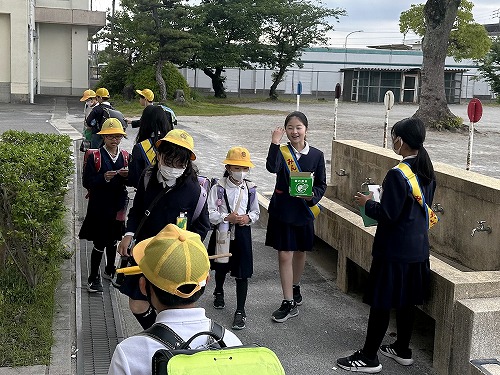 児童会執行部では朝のあいさつ運動にあわせて、「緑の募金活動」に取り組んでいます。