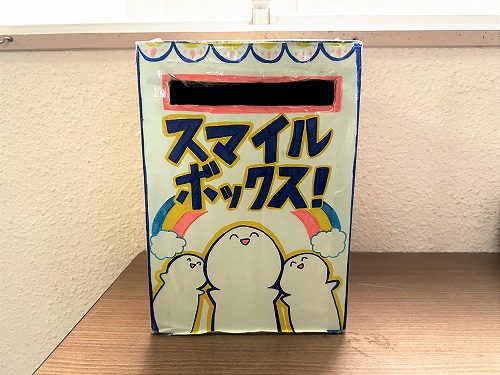二つ目の箱は「スマイルボックス」。昇降口に置かれています。楽しかったことや悩み事などを用紙に書いて投函します。児童会執行部がそれについて考えて、みんなで共有したり解決策を考えたりする取組です。どんな記事が入っているのか楽しみです。