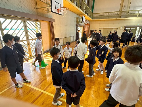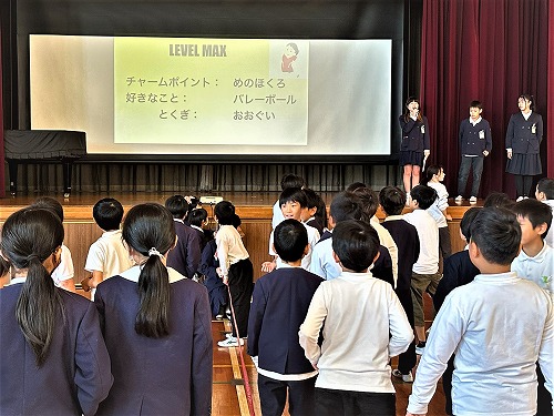 朝礼に引き続いて、全校で、児童会企画「わくわく交流会」を行いました。