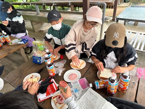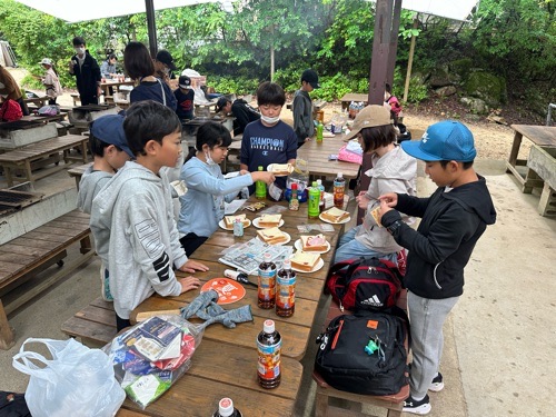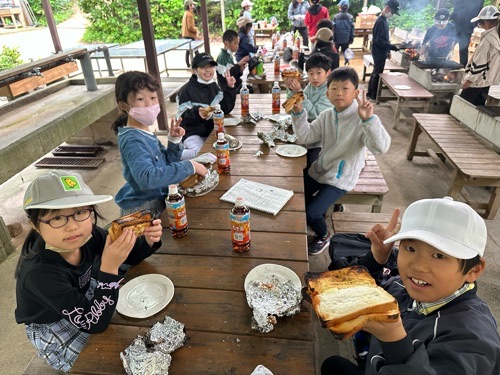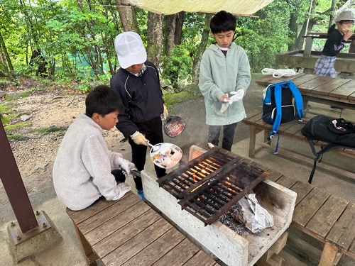 5年生のキャンプ 2日目は小雨でスタート 全員元気に起きてきました。