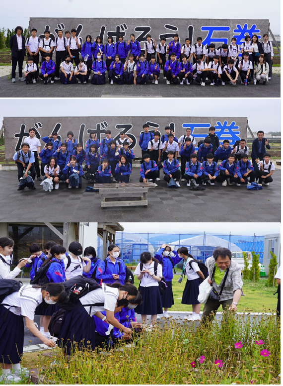 3.11みらいサポート」という団体の語り部の方に、各施設をまわりながら話をしていただきました。本校にも、以前に譲り受けたアイリンブルーが咲いていますが、その由来についても話をしていただきました。