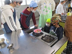 ピザ生地に餃子の皮を使い、ピザソース、チーズ、ソーセージを乗せてミニピサを作っていきます。子どもたちは、包丁を使ってソーセージを切りました。バランスよくトッピングし、完成です!最後はトースターを使って焼きました。ゆっくりと漂ってくるおいしそうな香りに、子どもたちの期待も高まります。トースターのベルが鳴り焼きあがると、順番に食べ始めました。あまりのおいしさに、「1枚は給食の時間に取っておいて食べる。」と言い出す子もいるほどでした♪
