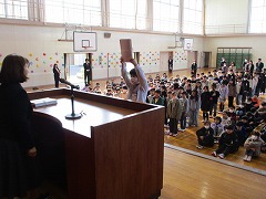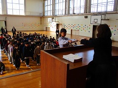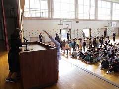 永和小では、避難訓練を段階的に行っています。まずは避難経路を覚える訓練。次に、地震と津波が発生した想定の訓練。さらに、授業時間だけでなく休み時間などに地震が発生した想定の訓練、というようにです。そして、13日は、事前予告なしで、落下物などで通常の避難経路が通過できない場合を想定した訓練が行われました。近くに先生がおらず、自分で階段や廊下が封鎖されている状態で、各自が経路を考えて避難しなければいけない子もいたと思いますが、全校児童が無事に避難することができました。