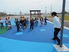 その後、2人1組で簡単なストレッチ体操。お楽しみで鬼ごっこをして、体育館いっぱい走り回りました。