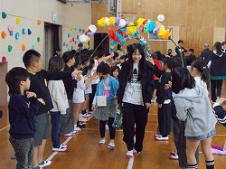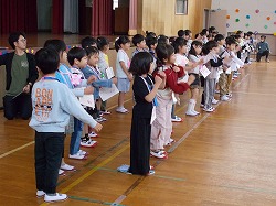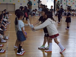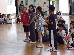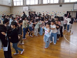 4年生の子どもたちは、1年生の子たちと一緒にじゃんけん列車をしました!