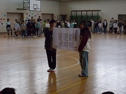 今日の1時間目に、「1年生を迎える会」が開かれました。