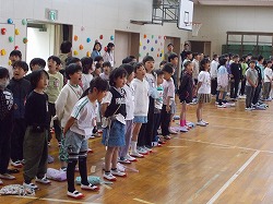 6年生の子たちの主導で、全校で永和小学校の校歌を歌いました。元気いっぱい、体育館に響いた歌声でした!