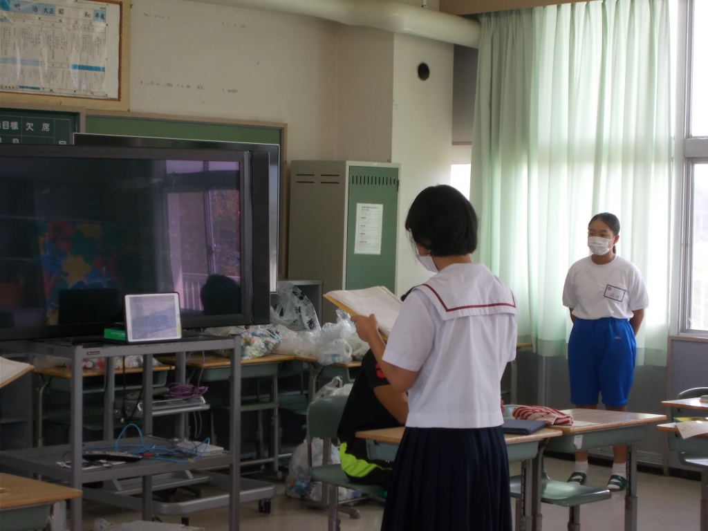 今日は生徒集会です。生徒会執行部と生活委員会からの連絡の後、今年度から新しく始まる企画について、生徒会から発表がありました。11月20日の家族学級の日に「有志発表」があります。今日は生徒会役員さんが見本として、手品とダンスを披露しました。詳しいお知らせは後日あると思います。音楽・ダンス・芸能など、自分自身の特技を披露したり、仲間とともに練習して作り上げてきたものを発表したりしてみませんか。発表時間は1グループ入退場込みで5分程度を予定していますが、参加グループ数によって変わってくることもあります。