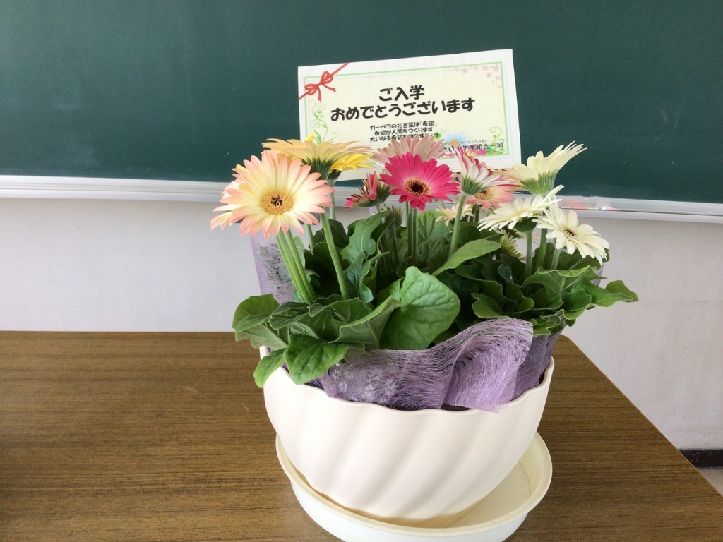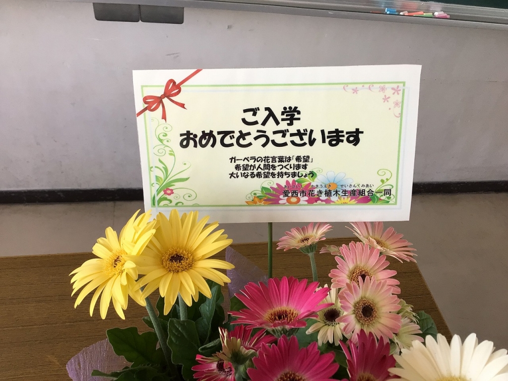 入学のお祝いに、愛西市花き植木生産組合様より、お花をいただきました。