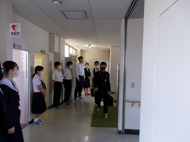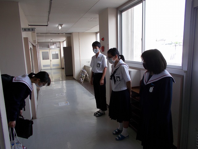 活動前を始める前には、委員長から活動するときのポイント(笑顔・立つ場所など)の話をし、メンバーが目的をもって、気持ちをそろえて活動できたように思います。