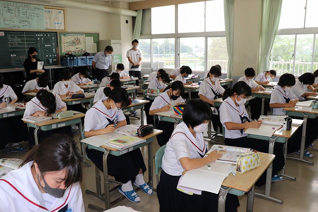 教育実習最終日です。今日は、1年A組で、教育実習生の研究授業(社会)が行われました。原始から古代の日本の歴史です。今日は、古墳時代の「ヤマト王権」について、古墳を手掛かりに様々な資料を使って当時の様子を想像していきました。