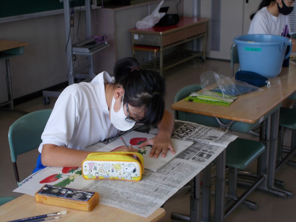 夏休み期間ですが、勝幡駅前広場にある陶板タイルの作成をしています。老朽化のために市内全校で作成をすることになり、八開中でも作成をしています。夏休み前に陶板タイル作成について全校に募ったところ、1・2年生の何名かが立候補しました。昨日は作成日で、午前中は部活動、午後からは陶板タイル制作と大変でしたが、完成すればきっと多くの方が見てくださることでしょう。今までは蓮田をイメージしたものでしたが、今回は、八開地区は農業が盛んであることから、農作物をモチーフにする予定です。どんな作品ができるか楽しみです。