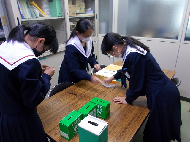 昼休みの相談室では、生徒会役員さんが、緑の募金の集計を行っていました。募金活動だけでなく、休み時間にも見えないところで活動しているんですね。この募金、身近なところで、緑を増やすために活かされています。