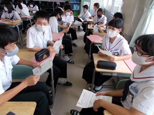 続いてZoom朝礼です。設定するのは慣れてきましたが、顔が教室のスクリーンに大きく映るというのはやはり緊張します。今日は環境委員のクリーンキャンペーンについてのお知らせがありました。気持ちよく学校生活が送れるよう、心を込めた清掃を心がけましょう。明日からは朝の除草が始まりますね。