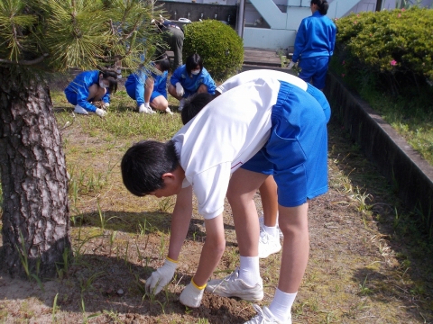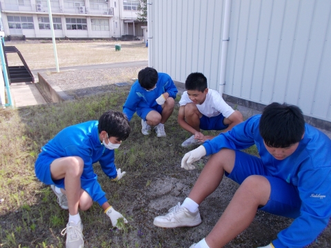 全校で草を取りました。