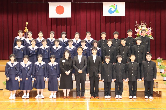 晴天に恵まれ、令和3年度入学式が行われました。新入生は、男子11名、女子18名の合計29名です。入学認定では、担任から一人一人名前を呼び、元気な返事をすることができました。新入生誓いの言葉も、落ち着いて堂々と話すことができました。初日ですので、まだまだ緊張が見られます。明日からは給食も始まり、6時間授業です。早く中学校生活に慣れてくださいね。