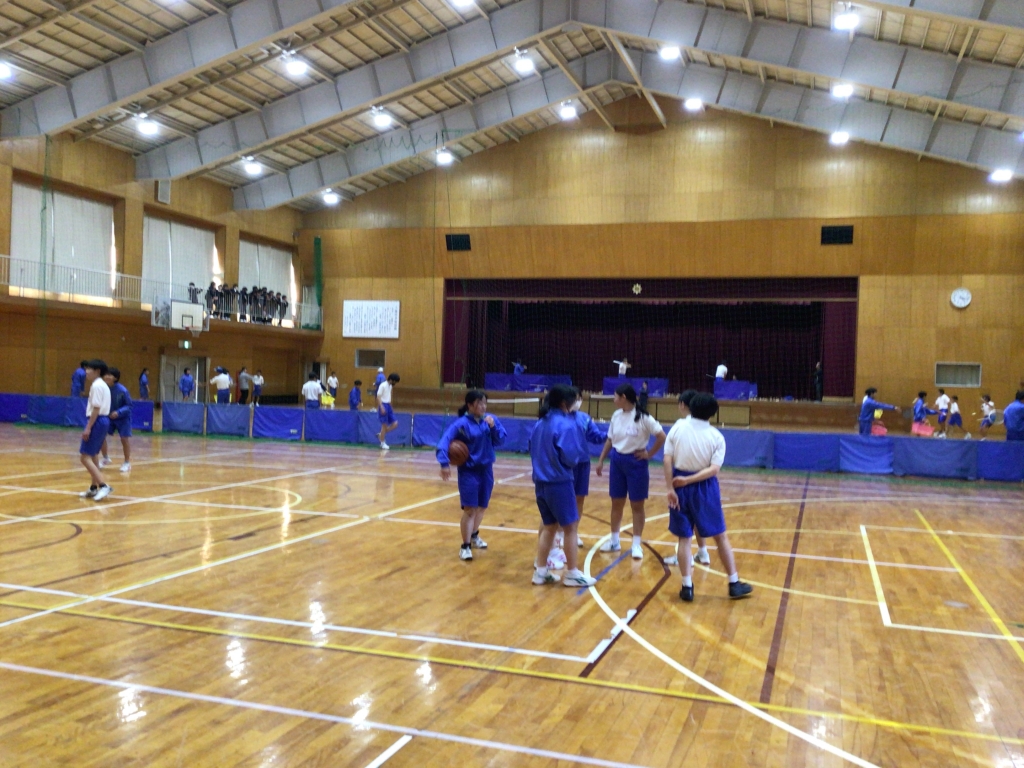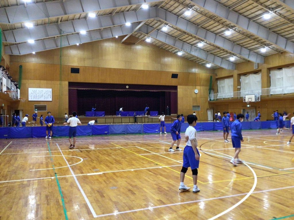 1日目の部活見学の日は、グラウンドの状態が悪く、外の部活動が体育館で練習を行いました。